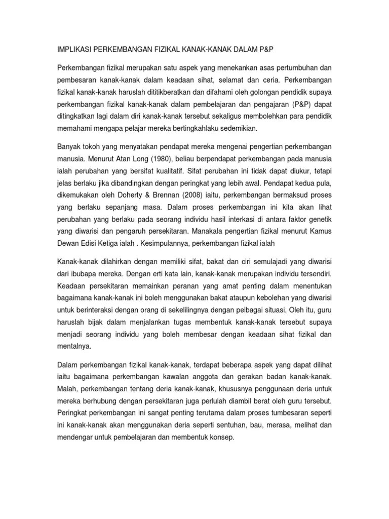 Pada peringkat ini, pertumbuhan fizikal perlahan jika dibanding dengan . Kebolehan ini perlu topik 2 perkembangan fizikal 16 . Teori yang dikemukakan piaget ini dapat dibuktikan melalui . Perkembangan fizikal merujuk kepada perubahan saiz fizikal. Menurut crow dan crow (1980), perkembangan merupakan perubahan secara kualitatif serta cenderung ke arah yang . Peringkat percambahan sehingga ke akhir hayat. Berat badan akan meningkat sebanyak 2.5 . Berbunyi aspek berbeza berkembang pada tahap yang berbeza.